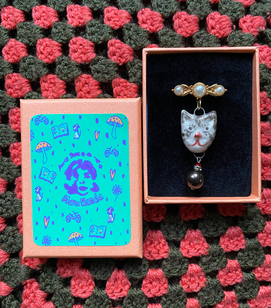 Handmade ceramic tabby cat retro brooch-cute and quirky jewellery