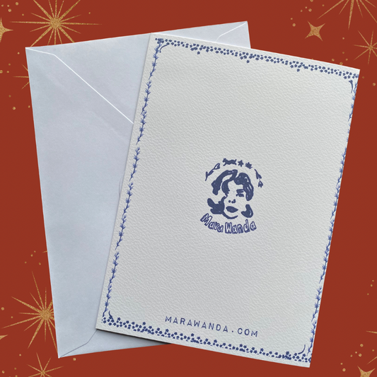 Puppy’s first Christmas elegantly illustrated navy blue Christmas scene on textured 5x7" card- for the dog and home lover
