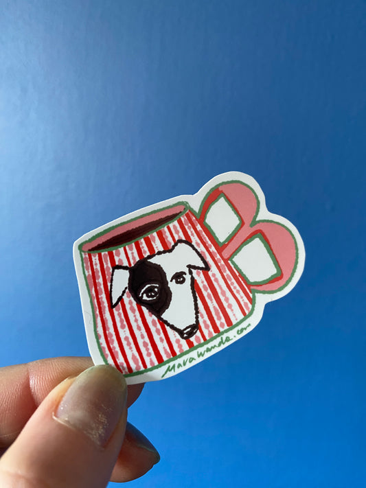 Whimsical tomato cat, sardine, strawberry cake, oranges and dog coffee mug glossy stickers