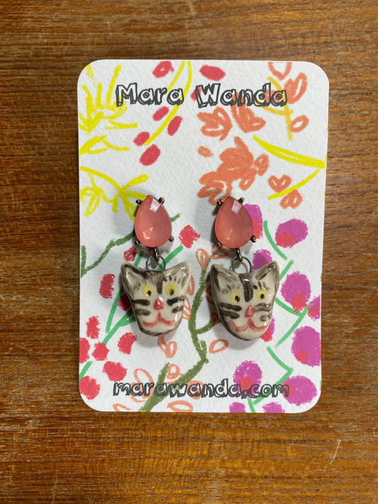 Ceramic tabby cat earrings-cute and quirky jewellery