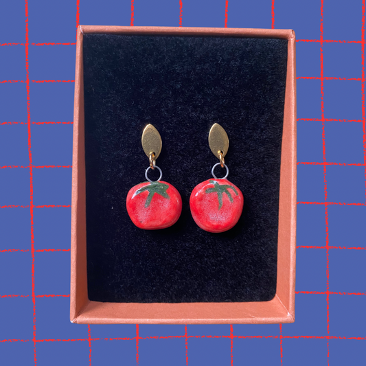 Handmade ceramic tomato earrings - whimsical food jewellery