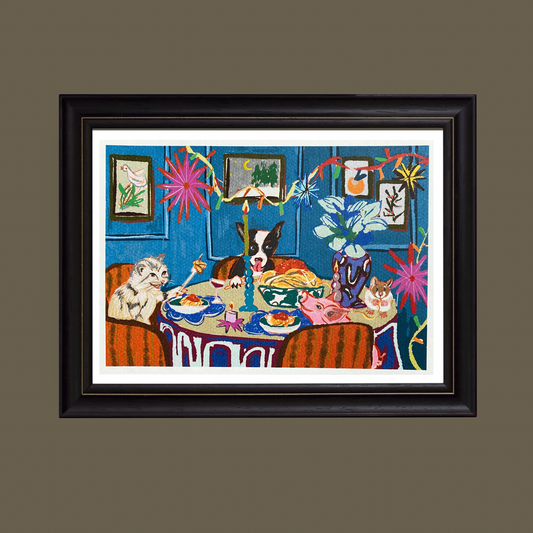 "Spaghetti dinner party" whimsical wall art