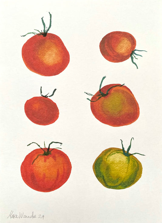 Fresh and colourful tomato art print - botanical watercolour wall art