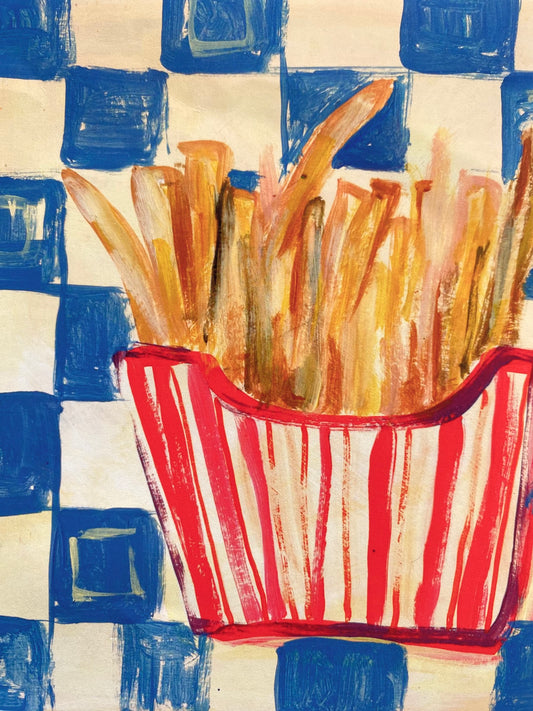 Retro Fast Food Print - French Fries and Checks Wall Art